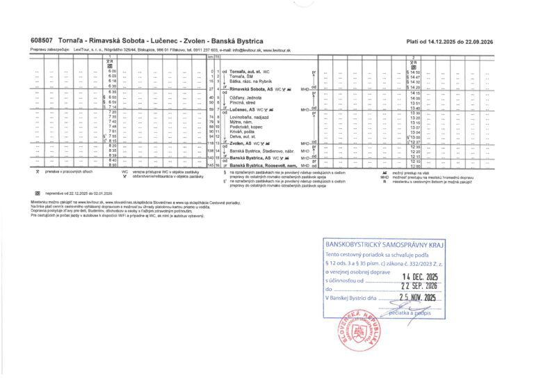 • Cestovné poriadky